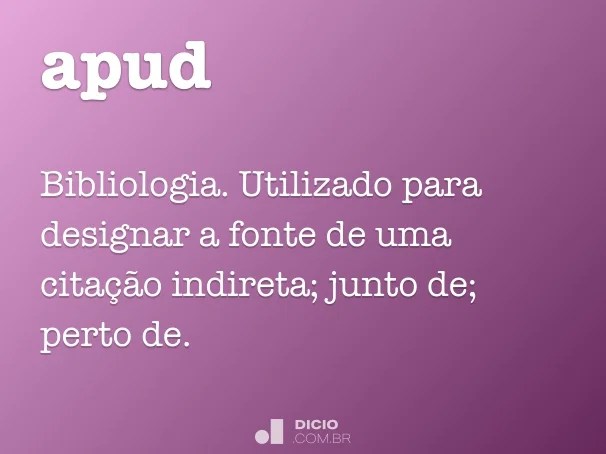 Caso algum professor tocar no tema apud, você já sabe que se trata de uma citação a ser feita. . Ao ser explorado em artigos acadêmicos, "apud" significa citado por.