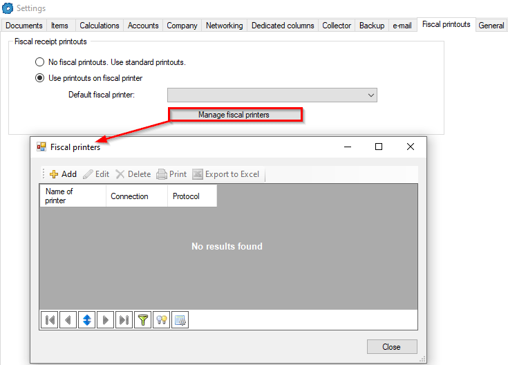 Damit ermöglicht er die zentrale und transparente umstellung auf fiskalkonforme 1 kassenplätze im filialhandel, größeren unternehmen und im hotelgewerbe.. To add a printer, go to the program settings using the setting icon and then select the fiscal printouts.